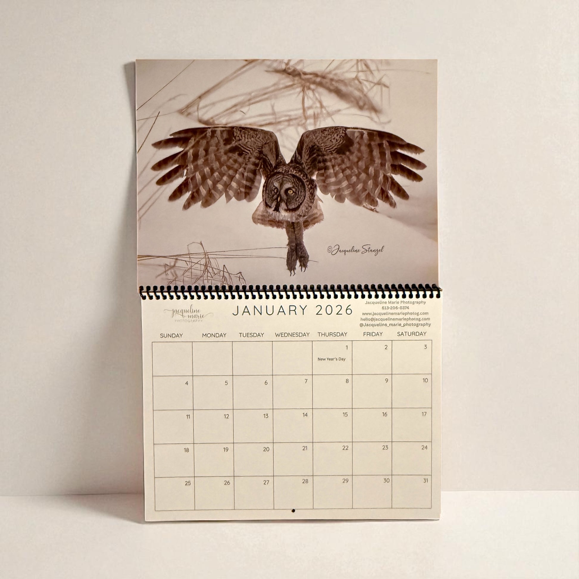 🦉 Owl Calendar – Elegant and mysterious, a perfect gift for birdwatchers and owl enthusiasts.